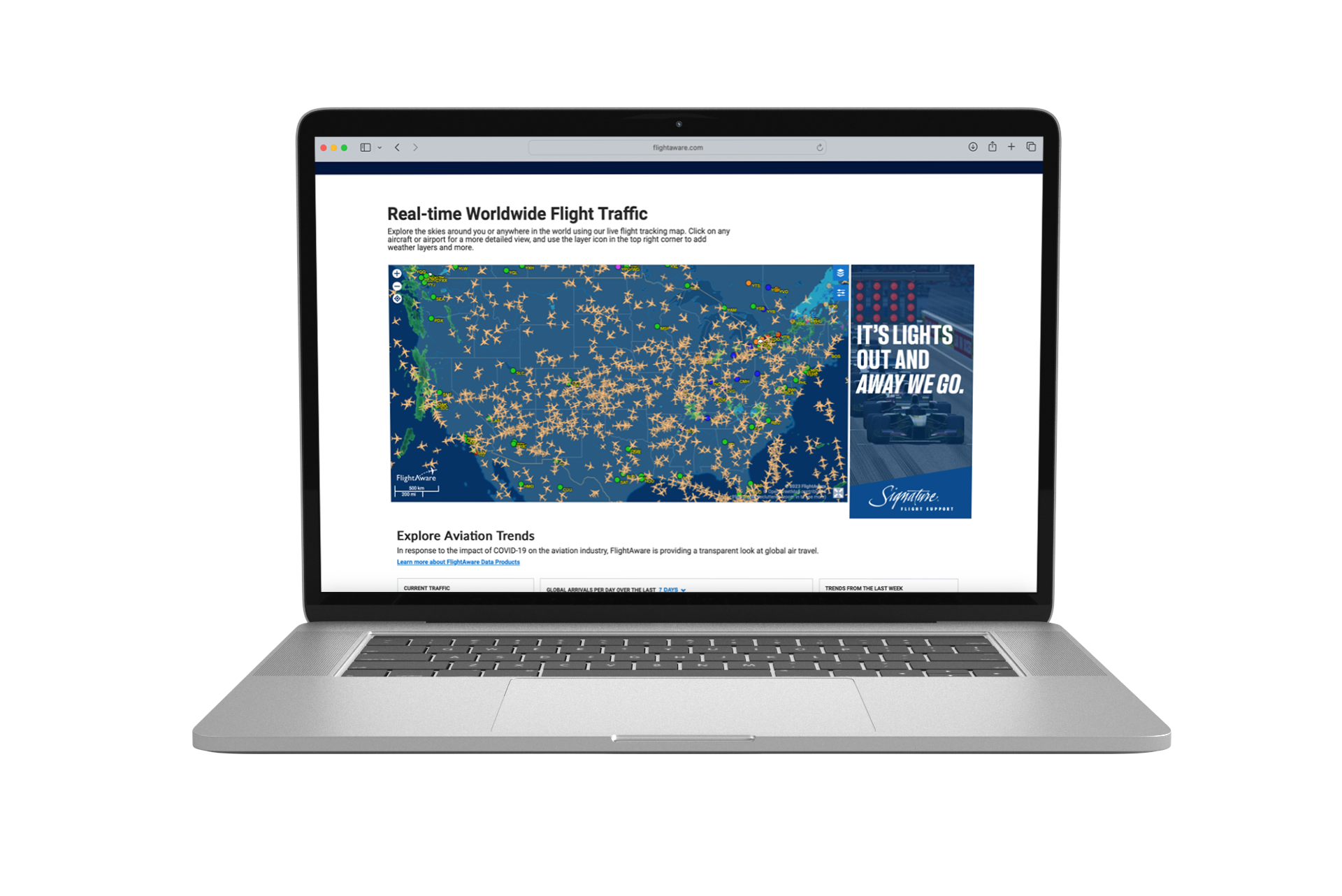 Paid digital ads were running on FlightAware.com. We know this aviation audience is generally familiar with Signature, even if they’re not used to see advertising. The ads were running in the days leading up to the race in each location. The goal was brand affinity.